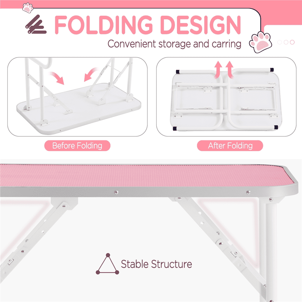 32"L Adjustable Foldable Pet Grooming Table, Pink