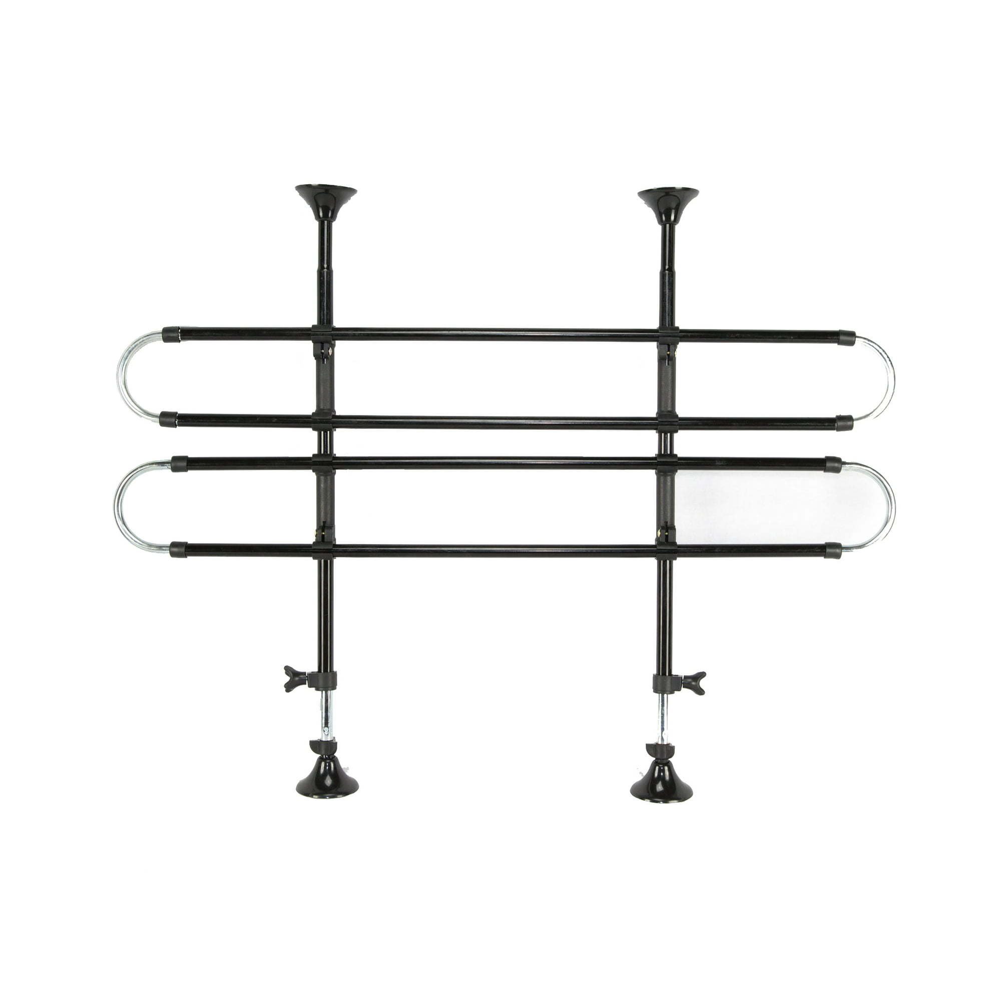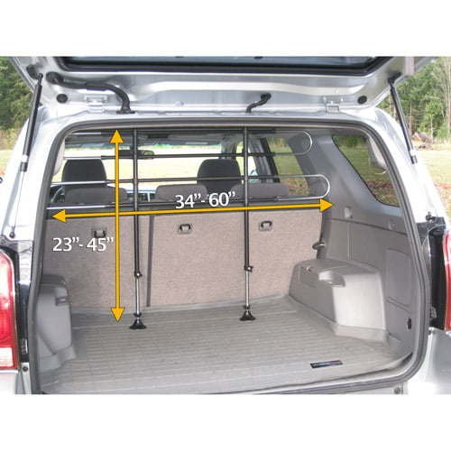 The Pet Vehicle Barrier is the safe way for pet owners to share drive time with their furry friends. Easy to install and adjust, the pet SUV barrier is nearly universal in application, making it perfect for virtually any SUV, minivan or station wagon. Adjustable from 34" to 60" in width and 23" to 45" in height, the backseat pet barrier is compatible with medium to large sized dogs and it also functions as a partition for hauling luggage, groceries, boxes or sports equipment. Pets are safely, yet comfortably, confined to the backseat of your vehicle with the  Pet Vehicle Barrier. The backseat pet barrier is easy to install and dismantle.