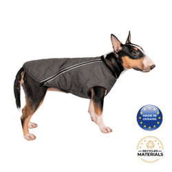 Bonne et Filou eco-friendly vest is made from 80% recycled materials - fishing nets and plastic. By taking care of your pet; you personally contribute to solving a global problem!Made with waterproof and windproof fabric; this universal jacket is perfect for all seasons. The fabric is made of processed materials that are dense and strong so it won't let moisture and cold pass - providing comfort for your dog in any weather.Thanks to its reflective zipper; this practical jacket is visible at night to ensure safe dog walks.Very easy to put on and clean. The special cut takes into account the anatomical features of dogs of different breeds; so the vest won't restrict movement.Help Ukraine! This product is 100% made in Ukraine and a portion of each sale is sent back to help Ukrainian pets affected by the war.Care instructions: Delicate wash or hand wash; avoid dryer and iron.