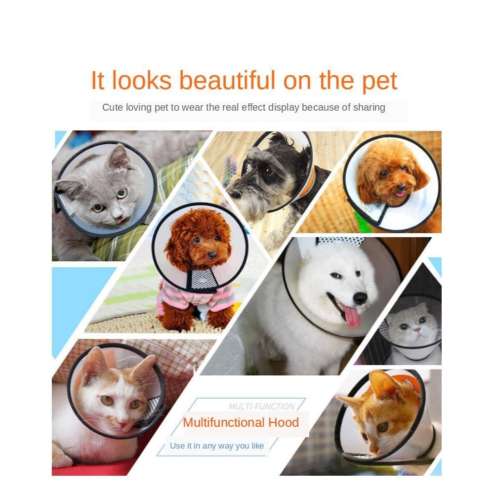 Type : Recovery SleeveOrigin : CN(Origin)Material : PlasticIs Smart Device : Nois_customized : NoType : DogsSeason : All seasonsPattern : SolidFeature : BreakawayFeature : PaddedFeature : Quick ReleaseSuitable for pets : Dog Catfeatures 1 : Pet Productsfeatures 2 : Dog protection collarfeatures 3 : Cat protection collarfeatures 4 : Elizabethan collarfeatures 5 : Convenientfeatures 6 : Beautifulfeatures 7 : Anti Bite Anti Grasping Anti Lickingfeatures 8 : anti-bite CollarSize : 9 sizesProduct DescriptionFeatures:1. The Elizabethan collar is made of environmentally friendly plastic and the all around edges is soft velvet will give them the sense of comfort. The Elizabethan collar is light, which will not make your lovable pets tired.2.The Velcro design can be adjusted according to the neck diameter of the pet to give the dog the most comfortable experience3.Translucent material, give the dog a wide field of vision, do not bind the dog4. Prevents scratching and biting at injuries, stitches, rashes, and wounds.5. Pefectly for overcoming lick-bite, itch-scratch, or use it when your pet takes a bath.It also provides a good protection in taking a bath, trimming the nails and other grooming occasions6. Multiple sizes for pets of different sizes.100% Brand new & High qualityColor: As pictureMaterial: Plastic+velvet+Velcro Note: Please allow 0.5-1 inch error due to manual measurement.Package include: Elizabethan collar* 1pc