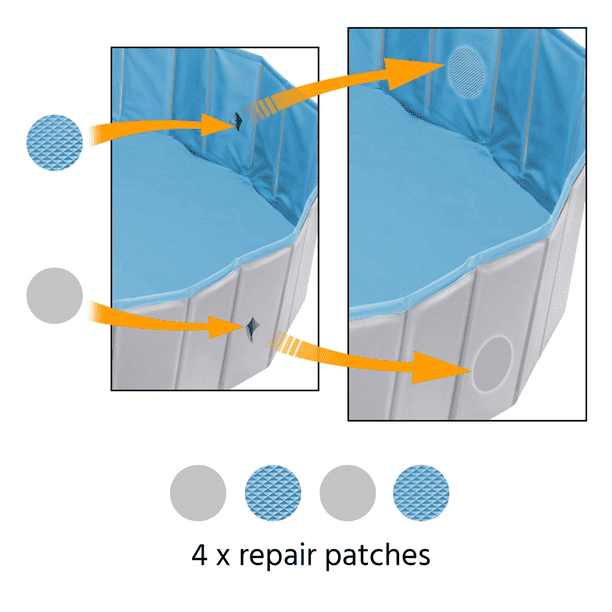 • Simple to use: Due to the simple structure, this pet swimming pool is very easy to use. No air pump needed. After pets' bath, just open the plug to let the water drain out, then fold it up. Plus, we give away a brush and four PVC covers which are used to cover the accidental damage on the bottom, and also you can brush and massage your pet.