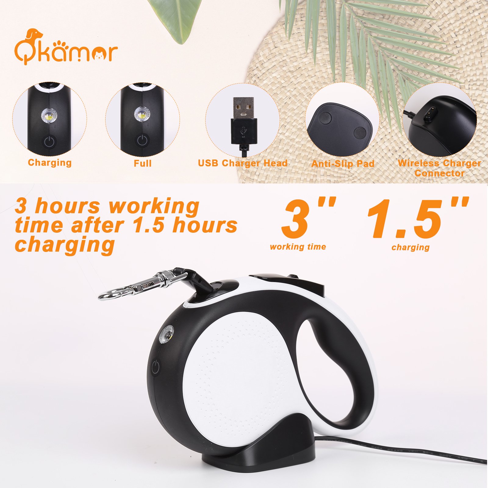 2.Convienient Charging Base,The rechargeable battery is equipped with changer included in the box,no need to open up the battery case and easy to link with wireless charging base.Intelligent charging and overcharging protection can keep the pets and owners' safety,about 3 hours long life to use.