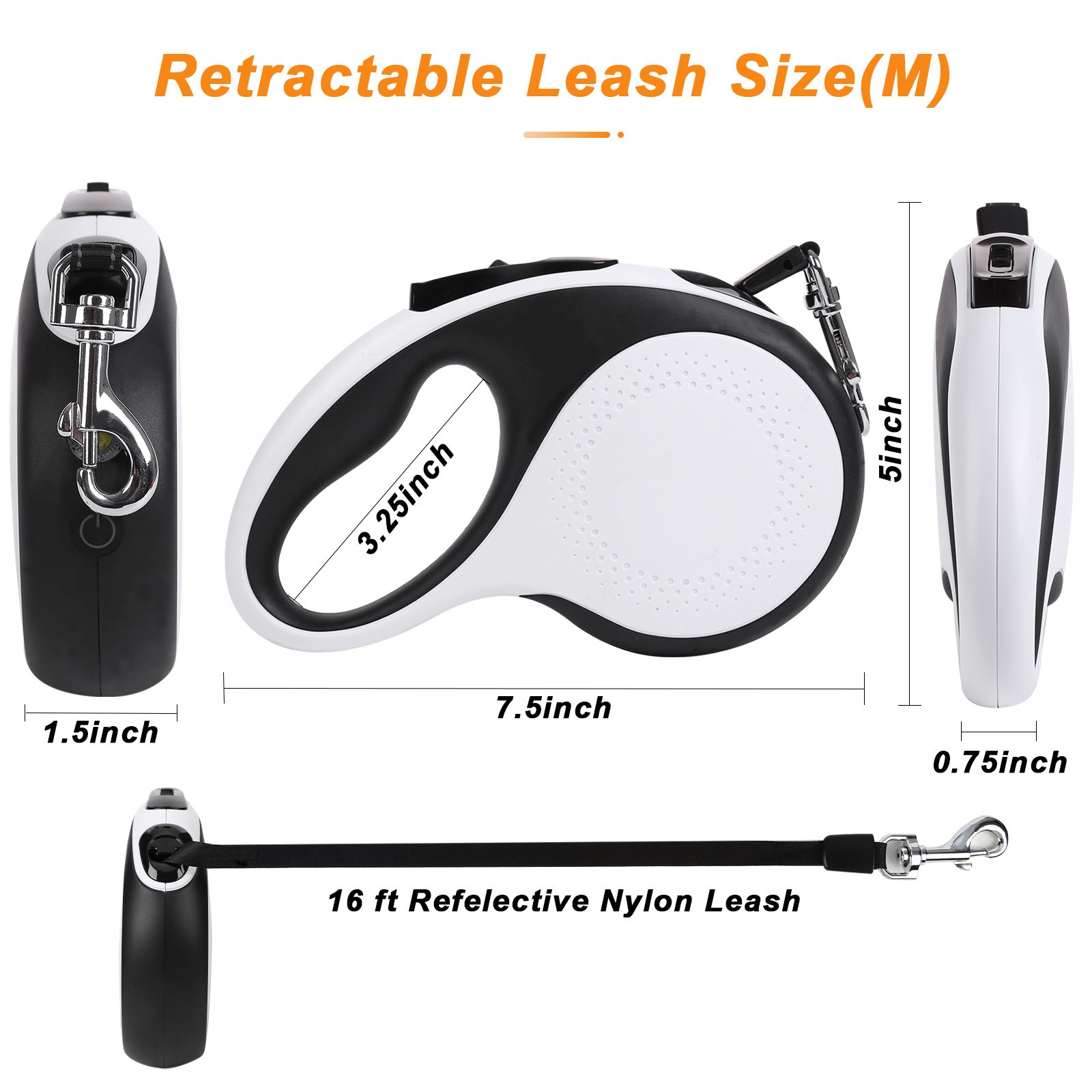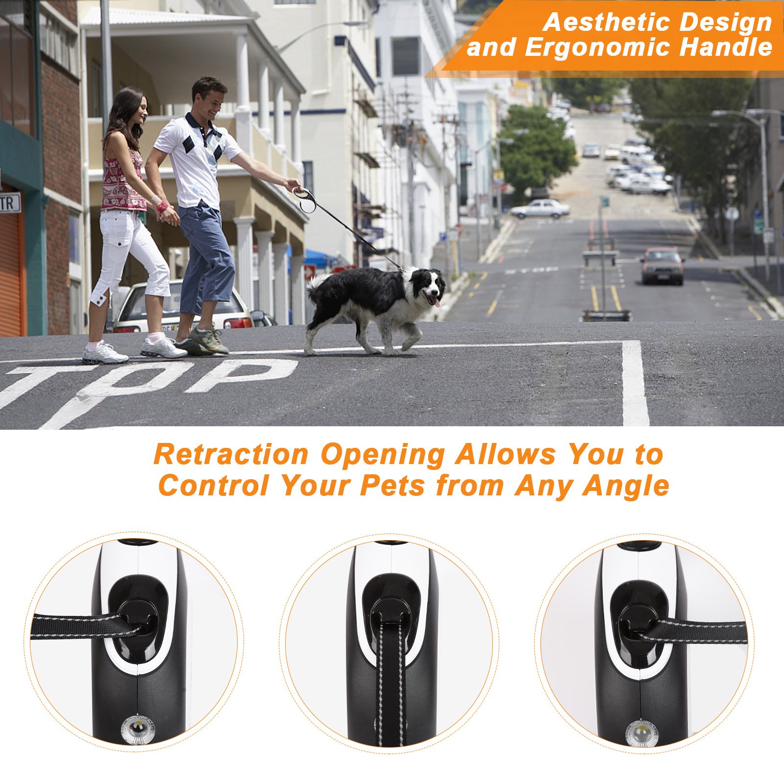 3.Refelctive and Durable Rope,Tangle-free 360° swivel leash and easy-adjust retraction can keep the pets explosion proof.16ft refelctive rope for night walking with small to large sizes dogs ,durable and high strength polyester leash provides dogs the flexibility to roam while maintaining control on a