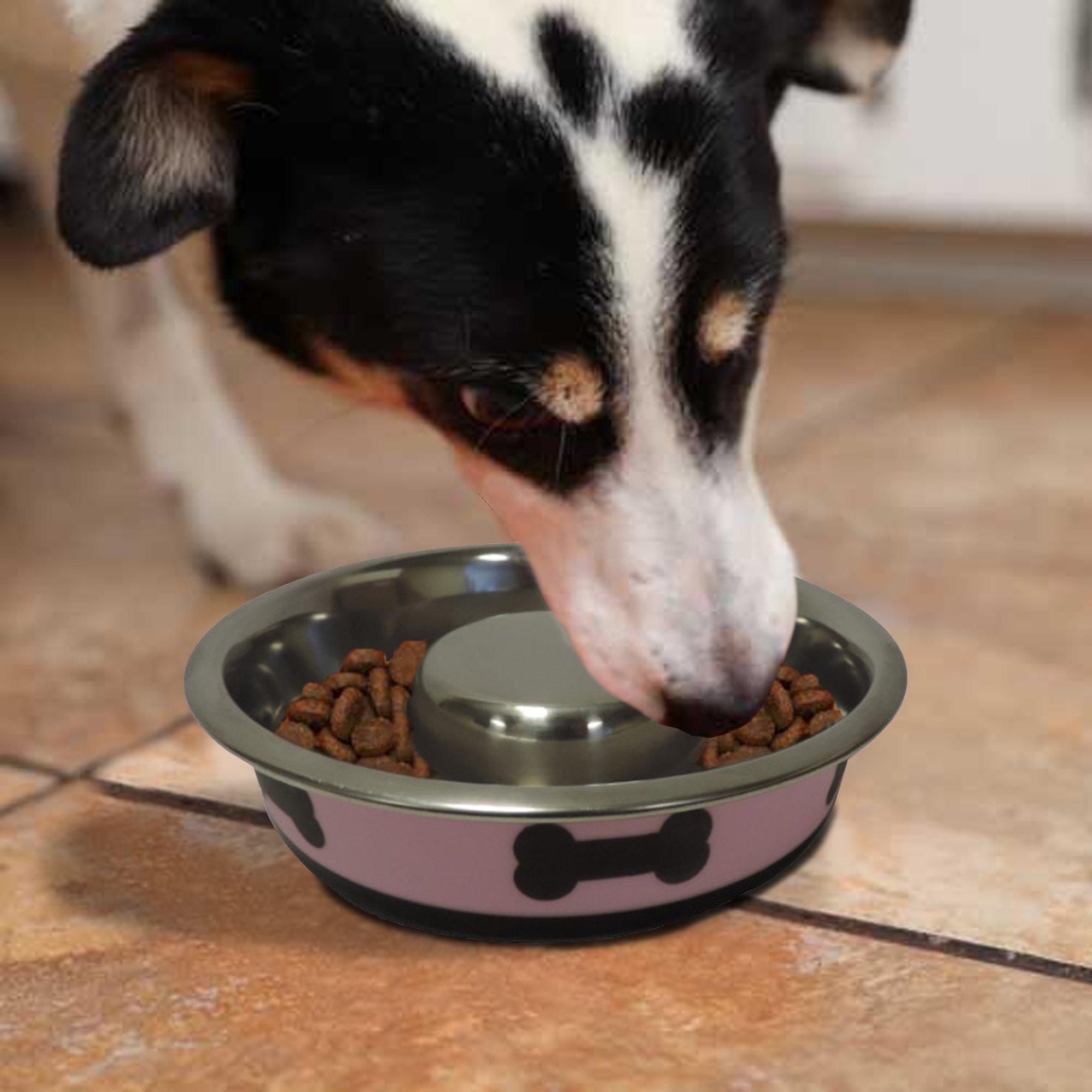 Slow Feeder Spill Proof Pet Bowl with Rubber Base and Bone Design; Pink and Black Slow Feeder Spill Proof Pet Bowl with Rubber Base and Bone Design; Pink and Black Slow Feeder Spill Proof Pet Bowl with Rubber Base and Bone Design; Pink and Black Slow Feeder Spill Proof Pet Bowl with Rubber Base and Bone Design; Pink and Black Slow Feeder Spill Proof Pet Bowl with Rubber Base and Bone Design; Pink and Black Slow Feeder Spill Proof Pet Bowl with Rubber Base and Bone Design; Pink and Black