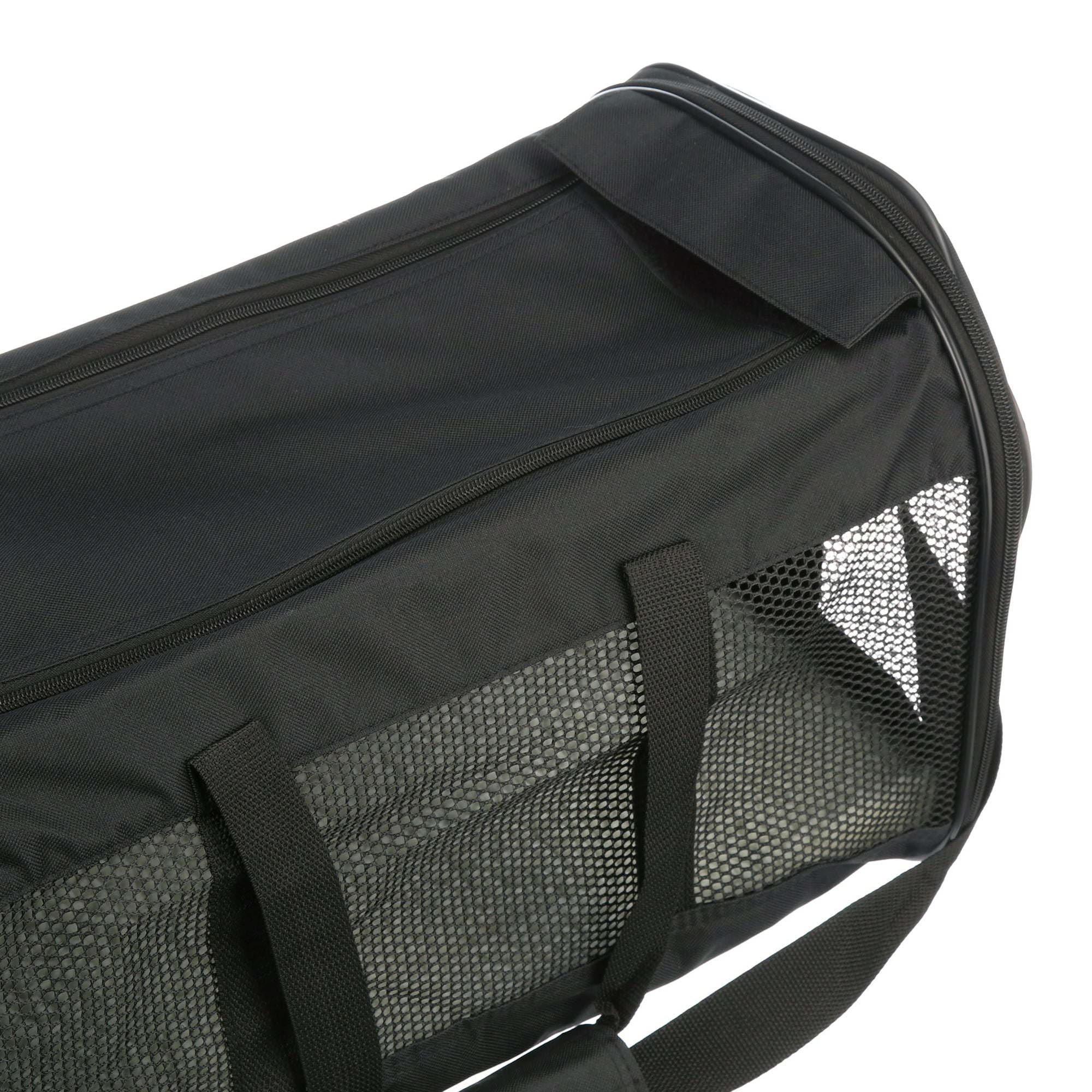 You & your pet will travel in style with Soft Sided Kennels. Perfect for general or in-cabin airline travel, these cozy kennels feature a 2-door design for both top & front loading, mesh walls to promote healthy air flow, a convenient carrying handle & comfortable shoulder strap. Soft Sided Kennels are made of durable material with PVC backing. The exterior rear pocket allows you to bring all your pet's essentials. Meets most in-cabin airline requirements.